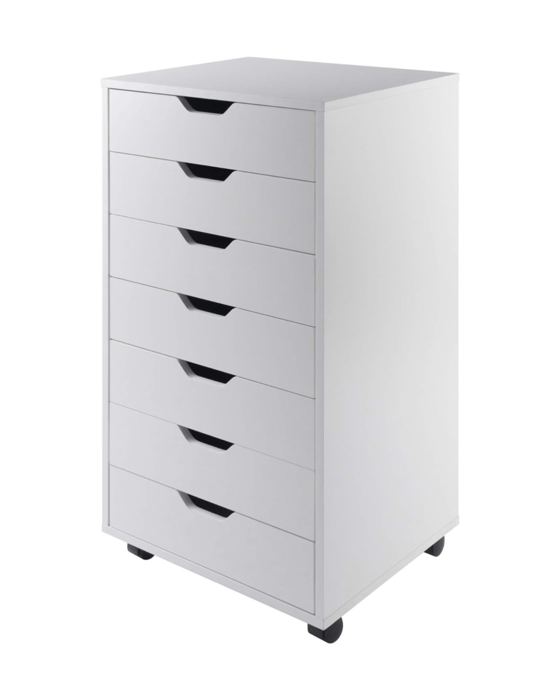 The cabinet has seven drawers, perfect for organizing a wide range of items. The drawers glide smoothly and have stops to prevent them from being pulled out too far. The caster wheels make it incredibly easy to move the cabinet around. This is especially useful when I need to rearrange my room. The wheels lock securely in place, ensuring stability. Despite its spacious drawers, the cabinet has a compact footprint, making it an ideal solution for smaller spaces, measuring 19.21 W x 15.98 D x 35.35 H. The Halifax Cabinet has transformed the way I organize my supplies. Each drawer is dedicated to a specific category, making it easy to find what I need without rummaging through multiple drawers.