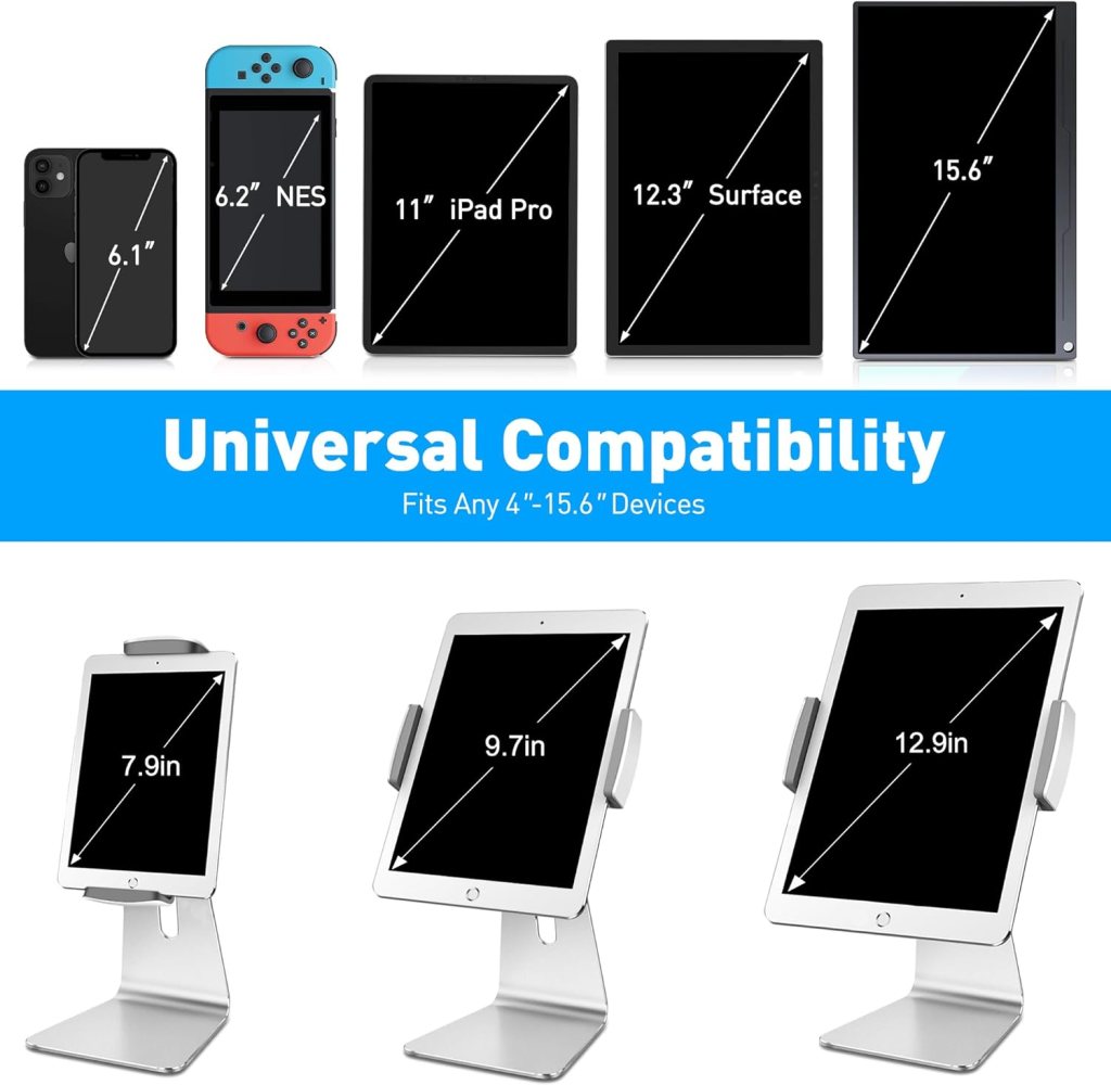 Over the years, the stand has proven to be incredibly versatile. It fits various sizes of tablets, from her first iPad to the newer models we’ve acquired since then. The 360-degree swivel base allows for easy rotation, so she can switch from portrait to landscape mode without any hassle. What has truly amazed me is the stand’s durability. Despite daily use, it has held up remarkably well. The hinges are just as tight as they were on day one, and the base remains sturdy and wobble-free. It’s clear that AboveTEK has paid attention to detail and quality in the construction of this product.